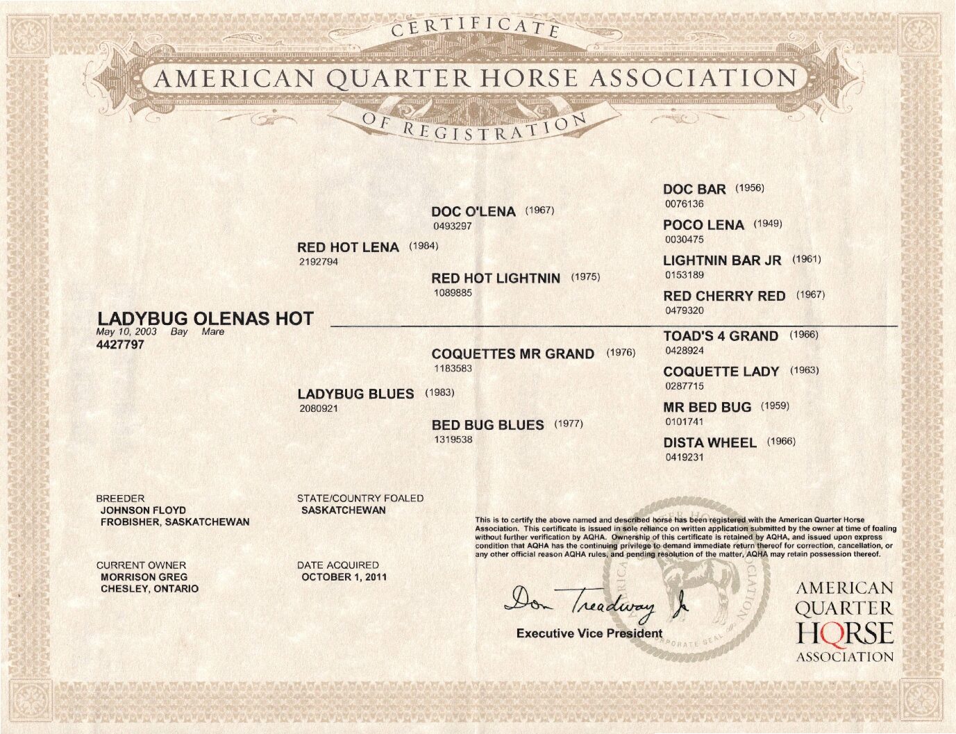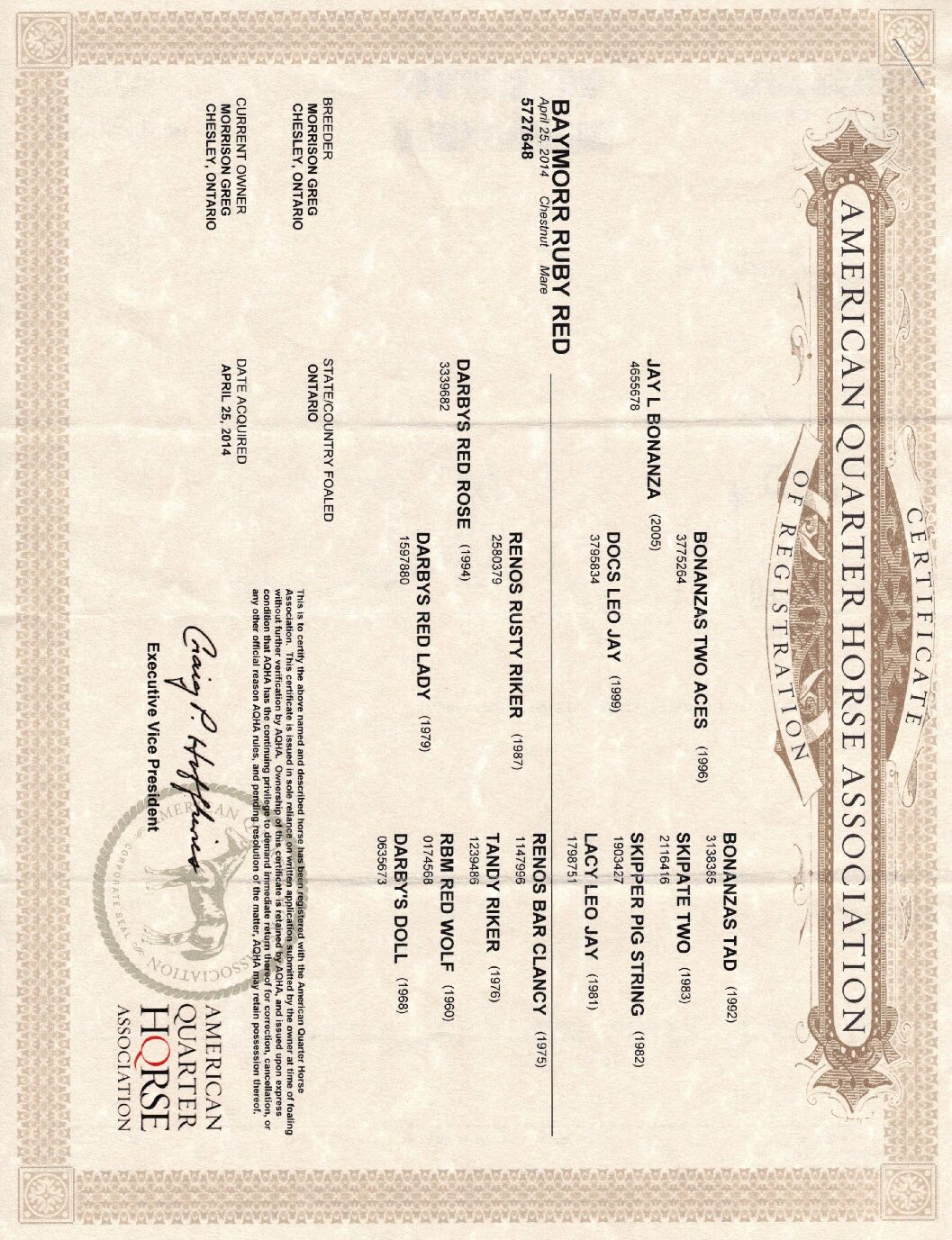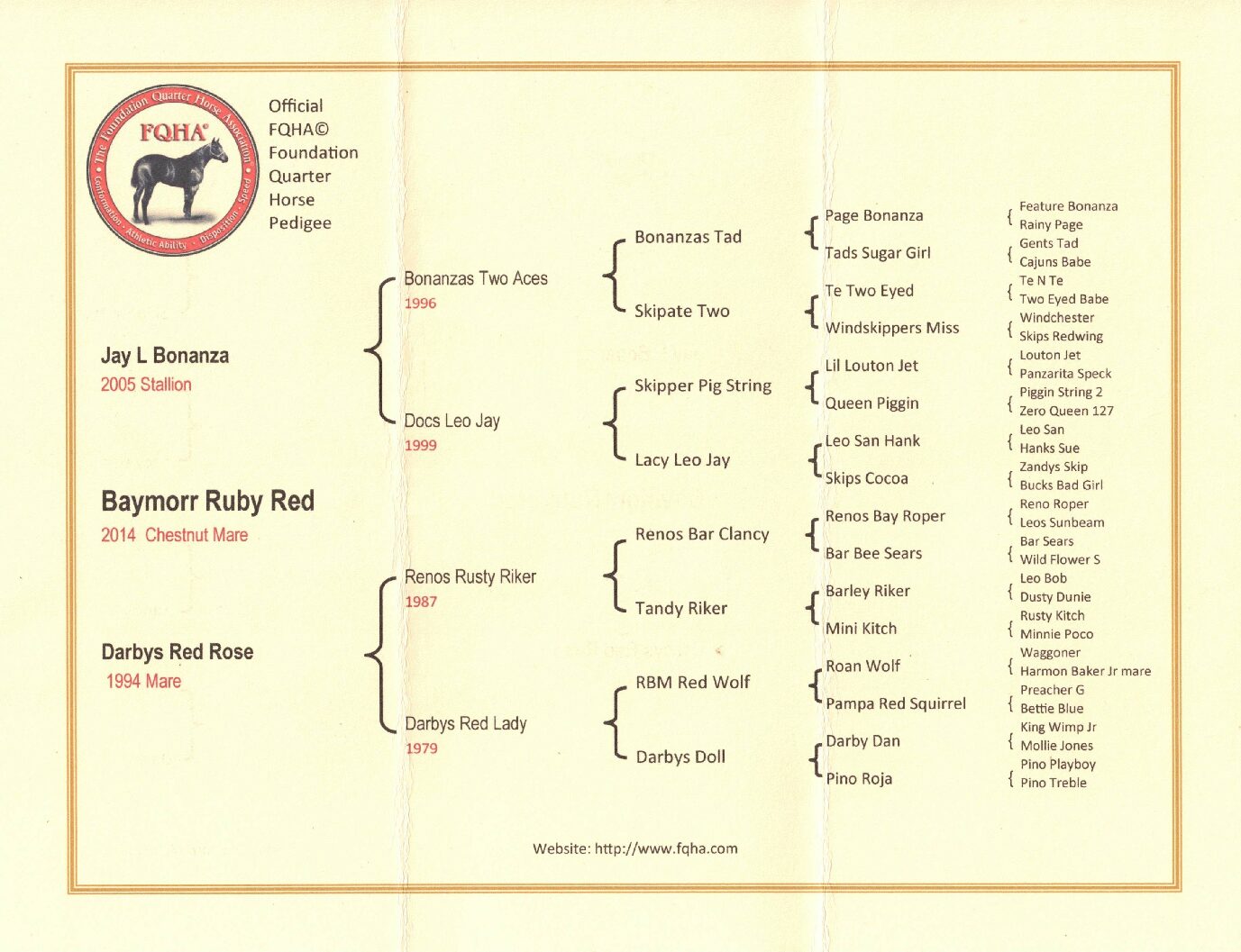 (Sire: Jay L Bonanza — Dam: Darbys Red Rose)