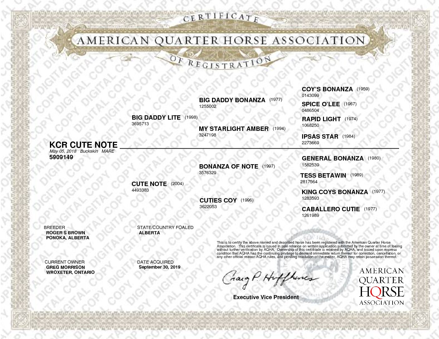 (Sire: Big Daddy Lite — Dam: Cute Note)