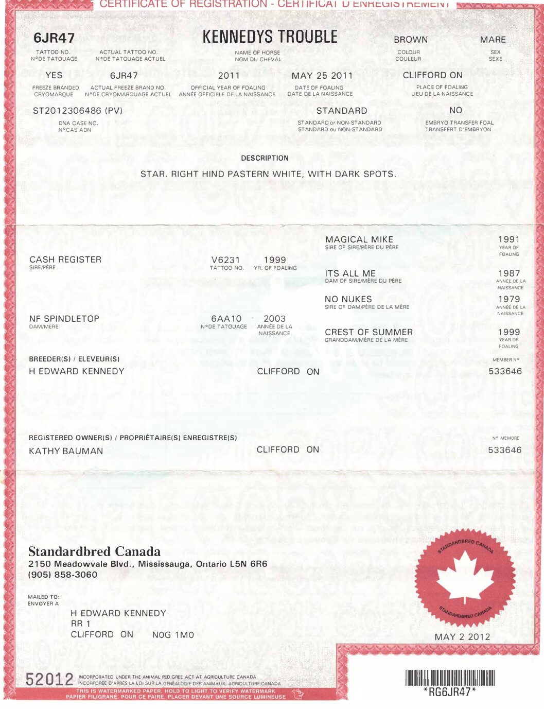 (Sire: Cash Register — Dam: NF Spindletop)